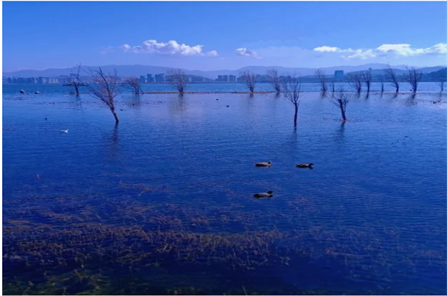 在黃昏余輝中只露輪廓;可以看鳥兒比翼齊飛、雙雙戲水,可以看鳥獨自隨波起伏、臨水照影,可以聽鳥兒一展歌喉。到劍湖觀鳥,你定能感受到意趣盎然、生機勃勃的春意。