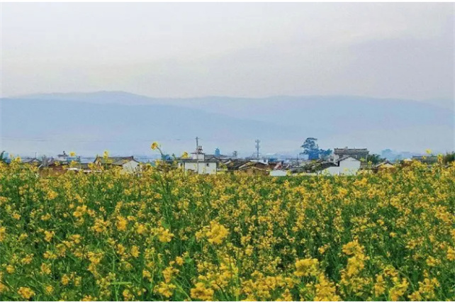 巍山廟街添澤村,2.3萬畝油菜花全面盛開,美上了《光明日報》頭版。雨水,不妨到那兒打卡,遠觀成片油菜花,感受花海的壯麗,近觀一株株油菜花,品花兒的清麗。